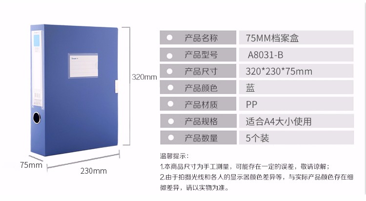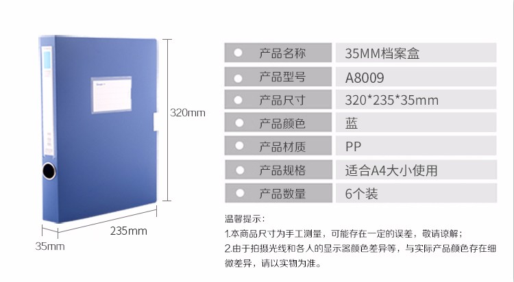 - 商品名称:广博(GuangBo)A4档案盒/文件盒/资料盒塑料文件夹文档收纳盒 办公用品 蓝色丨6个升级装 背宽55MM