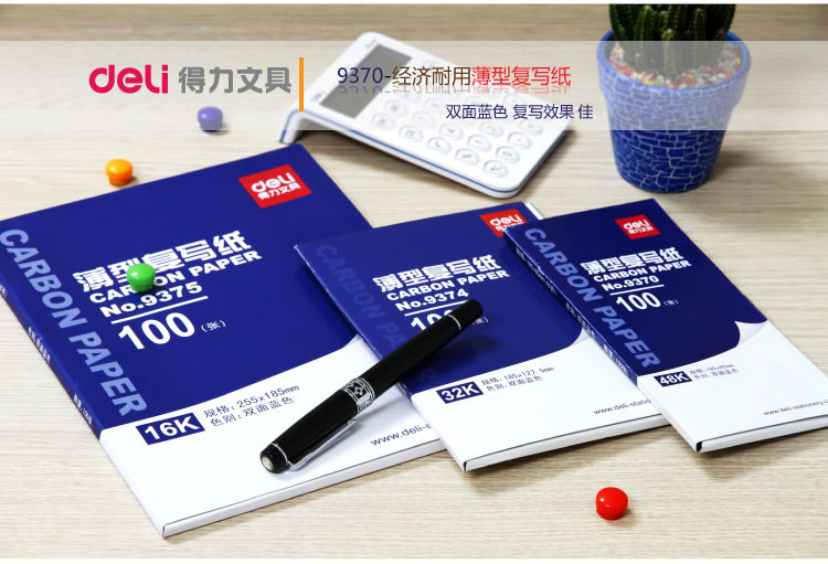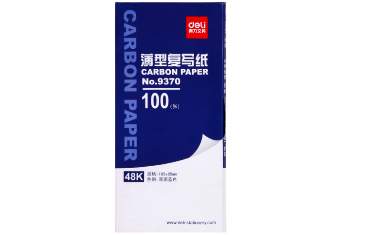 得力(deli)48K经济耐用薄型复写纸(18.5*8.5cm) 100张/盒 财务用品 蓝9370