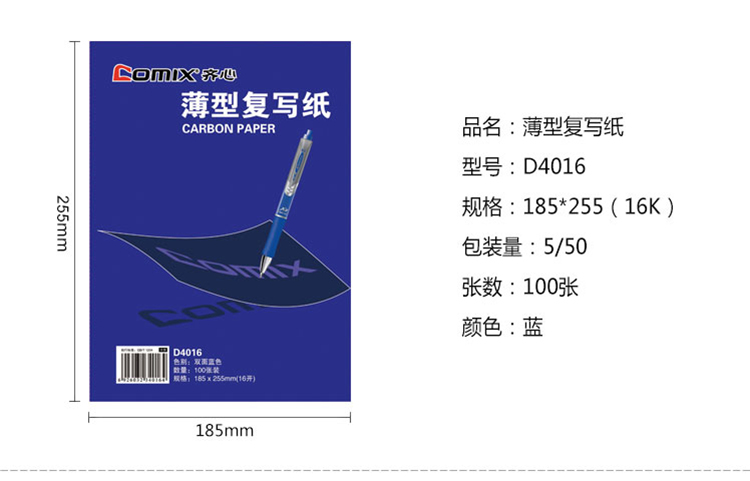 - 商品名称:齐心(COMIX)复写纸 16开/100页 D4016