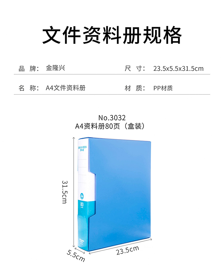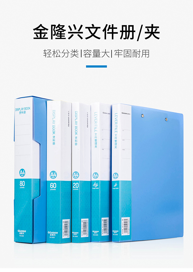 - 商品名称:金隆兴(Glosen)资料册60页A4文件夹插页袋档案册分类PP材质 3027