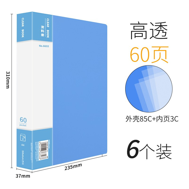 - 商品名称:【6个装】A4资料册活页资料文件夹文件册 塑料资料册插页袋试卷袋多层分页活页文件夹档案夹 60页(6个装)