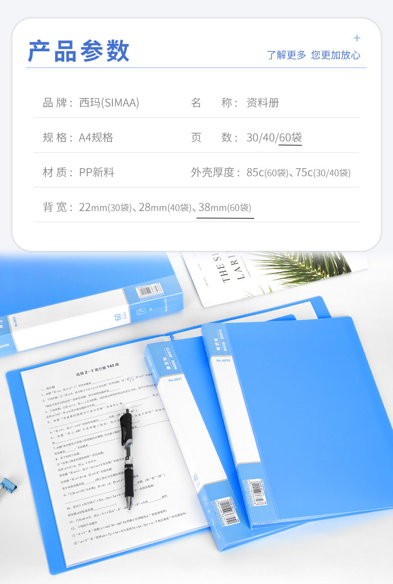 - 商品名称:西玛(SIMAA)A4/60页资料册/插袋文件册/活页文件夹/文件收纳袋 单只 办公用品6655