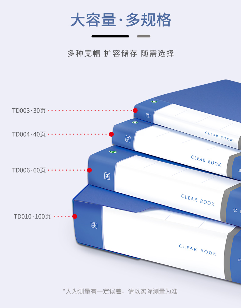 - 商品名称:金得利 6个装 60页 A4大容量资料册 插袋档案文件夹 文件册 学生用试卷收纳册 透明插页袋 蓝色 TD006-6