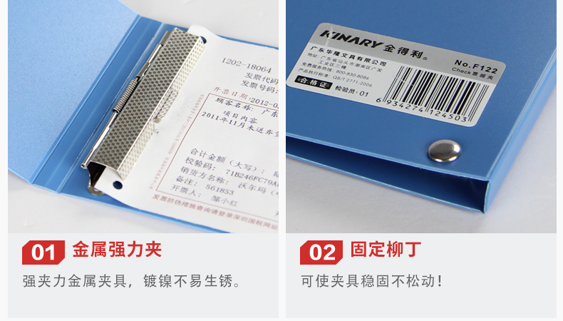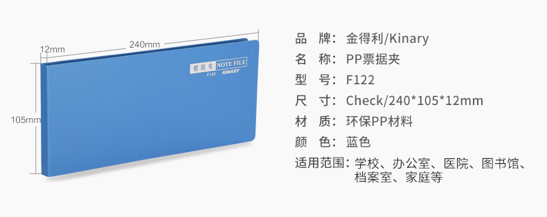 - 商品名称:金得利 5个装 银行支票夹票据夹 小号文件夹 资料夹 财务凭证收纳夹 F122 蓝色