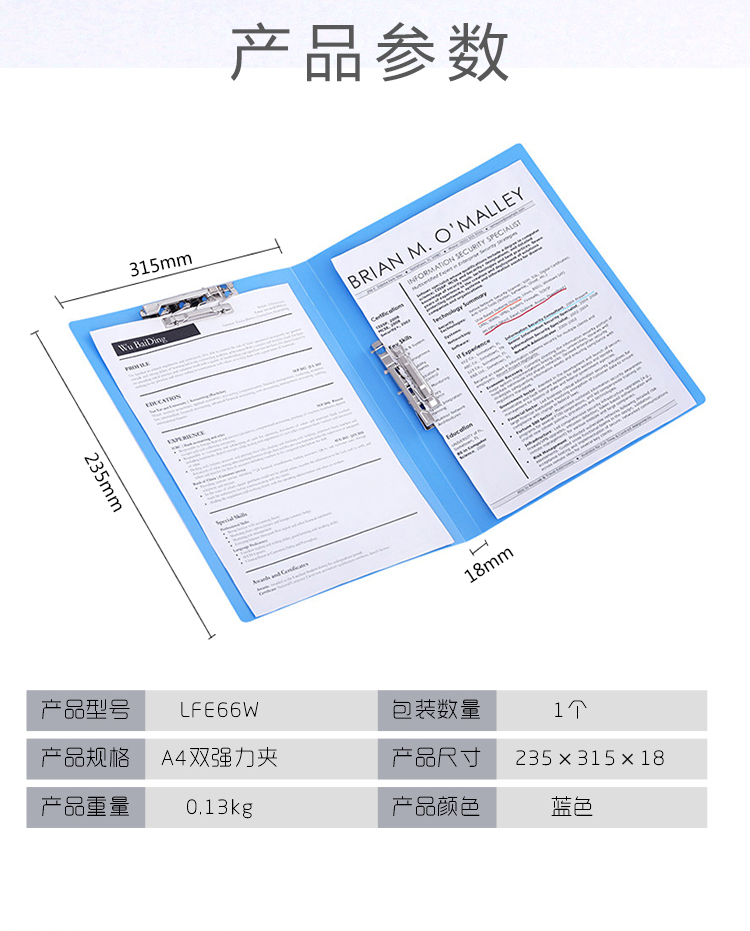 - 商品名称:三木(SUNWOOD) 经济型双强力夹/考试资料文件夹/文件管理 蓝色 LFE66W