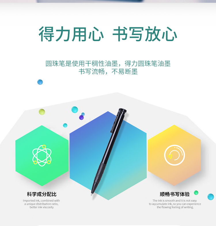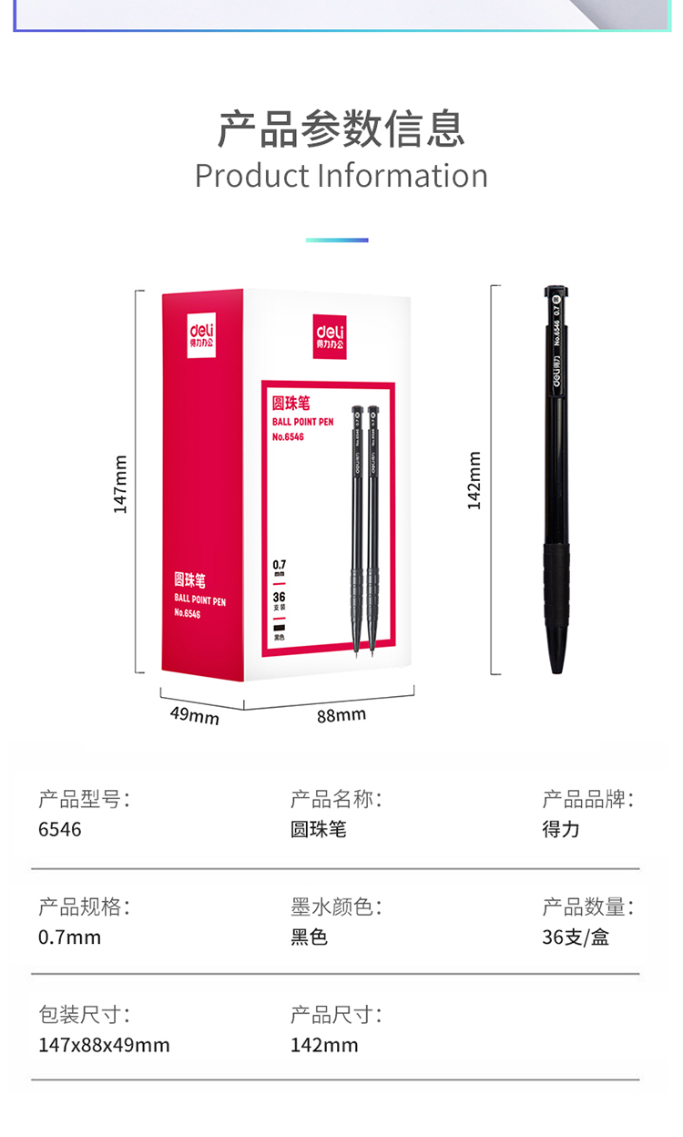 - 商品名称:得力(deli)0.7mm黑色按动圆珠笔中油笔 软胶握手原子笔36支/盒YZB-6546