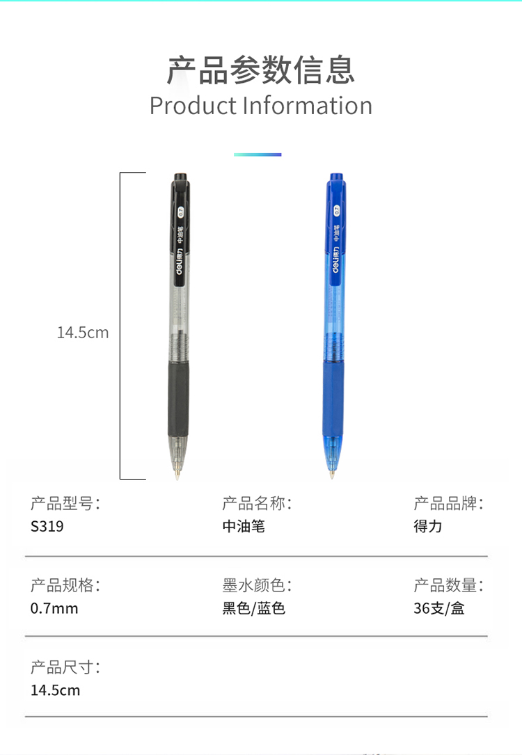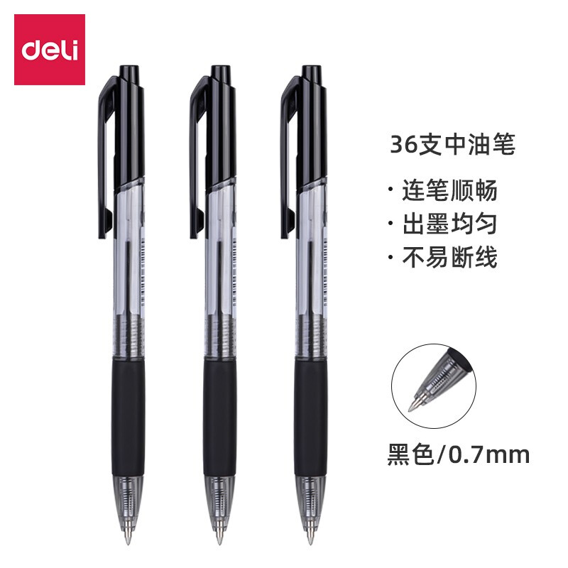 商品名称:得力(deli)0.7mm低粘度圆珠笔中油笔 英文书法笔36支/盒DL-S319黑 办公用品