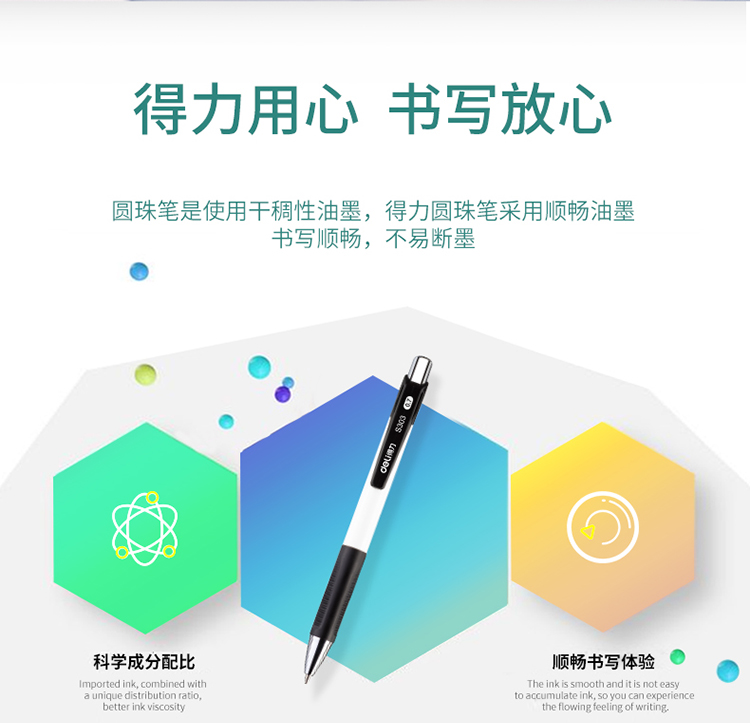 商品名称:得力(deli)0.7mm蓝色按动圆珠笔中油笔 新升级原子笔40支/盒S303