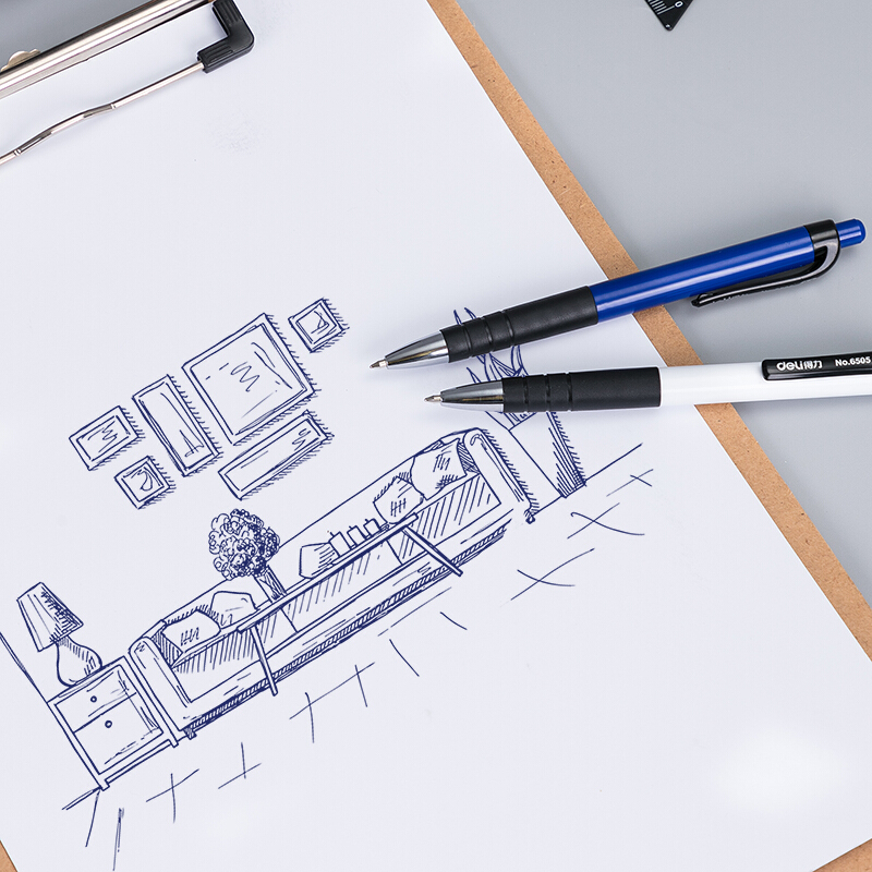 得力(deli)0.7mm按动12支圆珠笔中油笔 蓝色原子笔7694