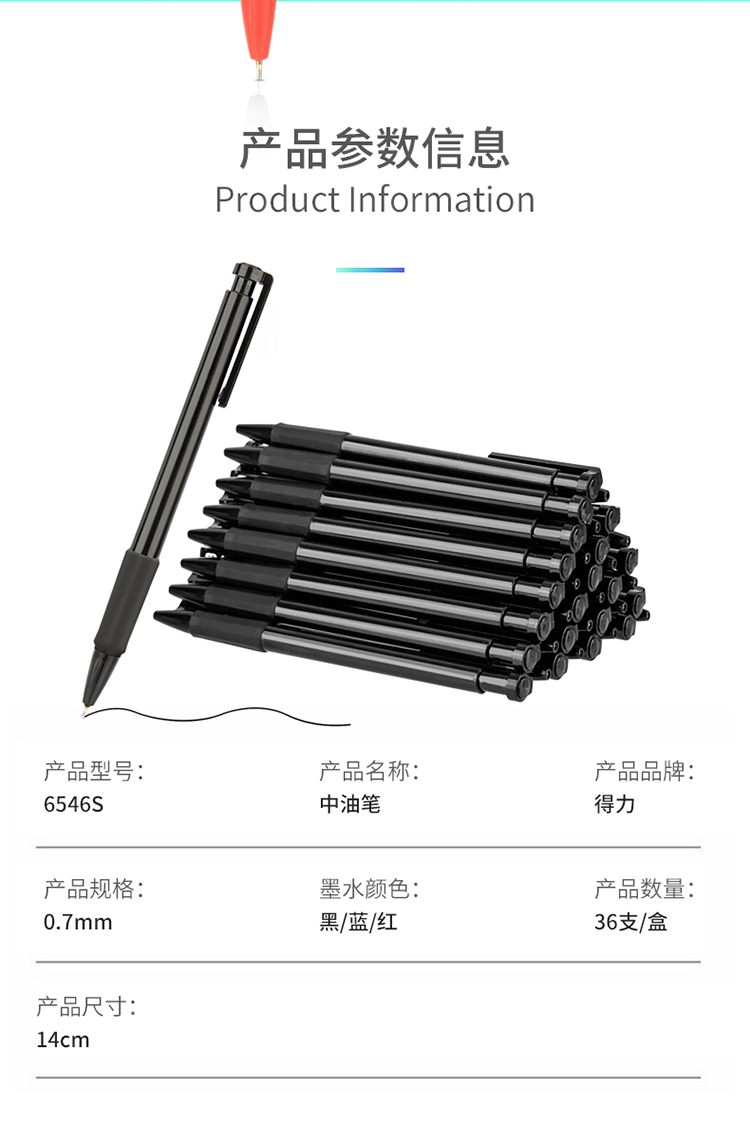 商品名称:得力(deli)0.7mm英文专用低粘度圆珠笔 迷你头中油笔36支/盒DL-6546S红