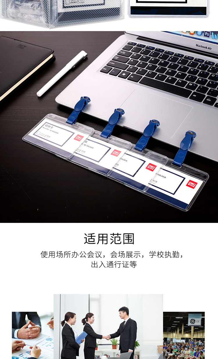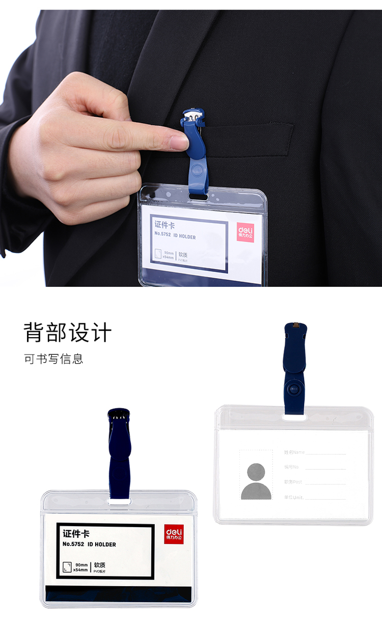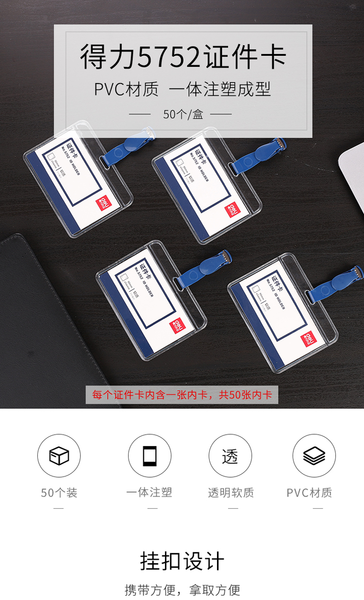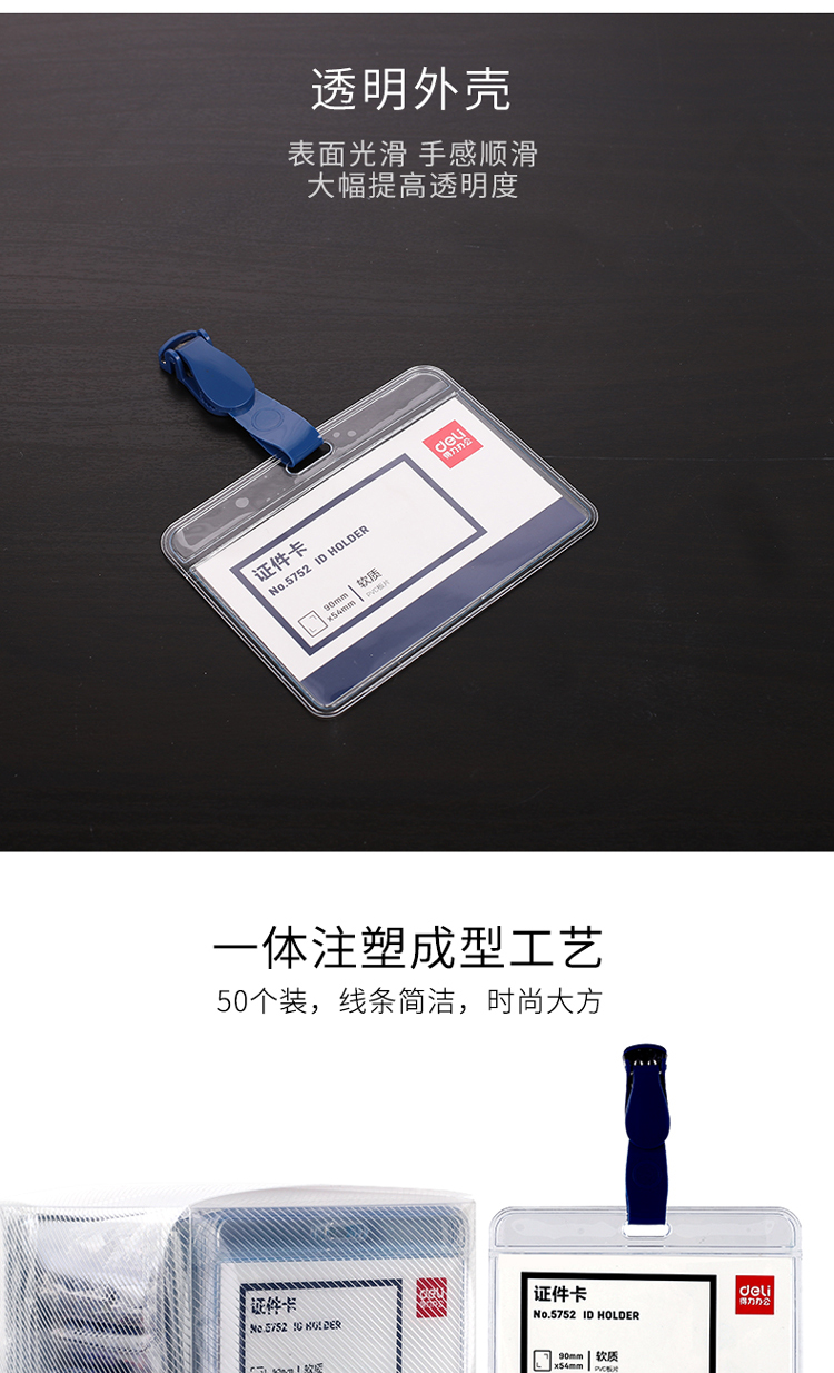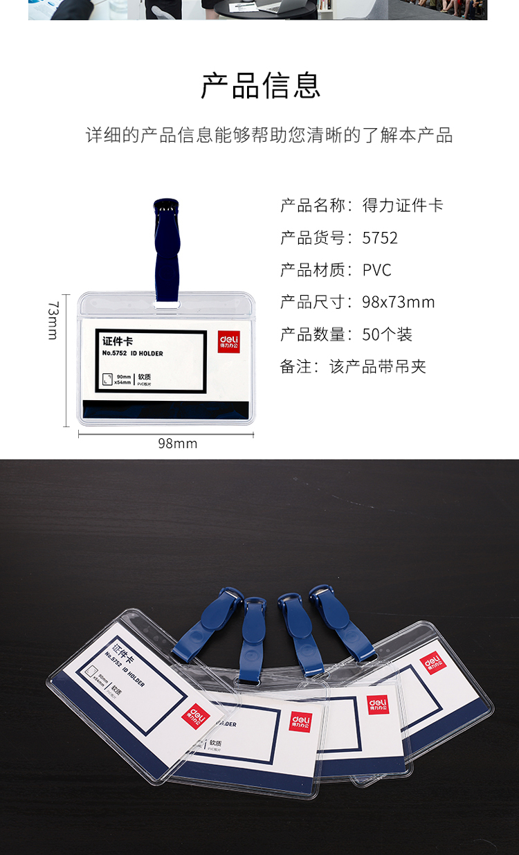 商品名称:得力(deli)50只软质PVC证件卡套 带吊夹 横式工作证员工牌 蓝