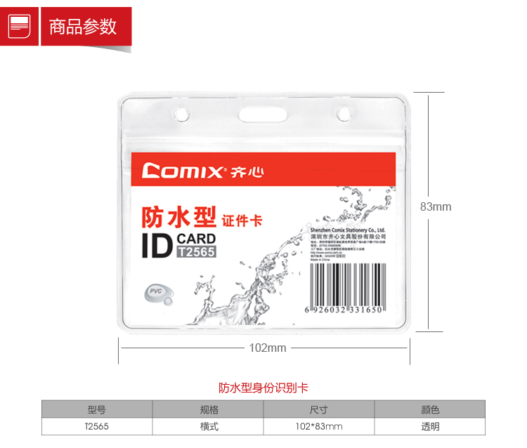 商品名称:齐心(Comix) 10个装 横式证件卡身份识别卡套 防水型软质PVC 透明 T2565