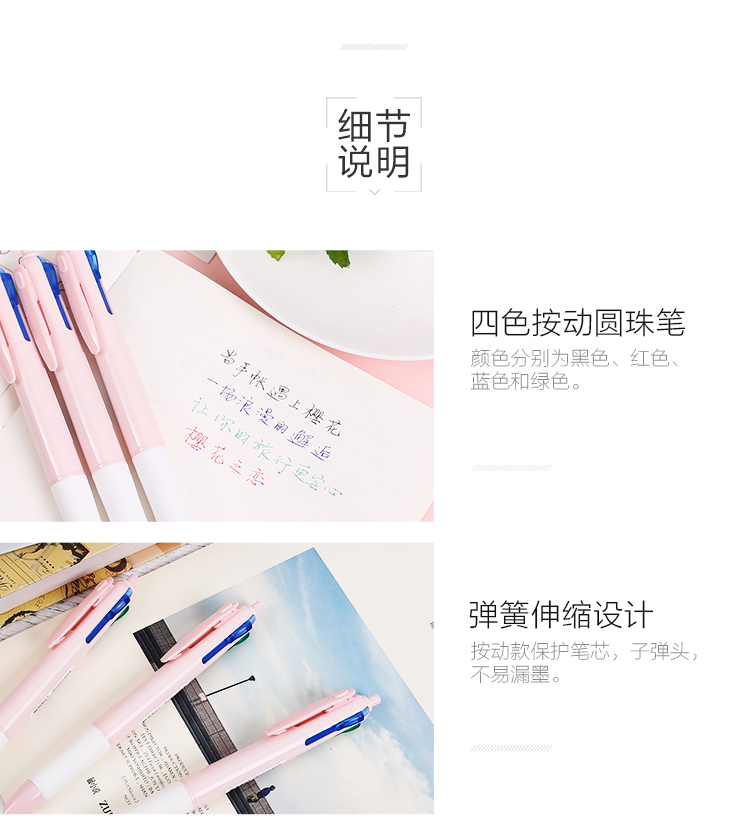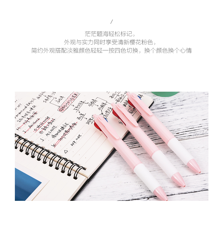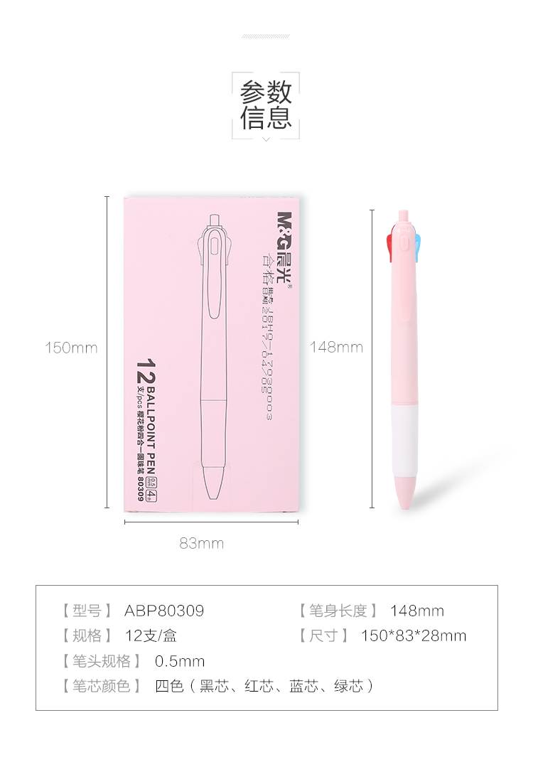- 商品名称:晨光(M&G)文具0.5mm/4色按动圆珠笔 多功能多色子弹头原子笔 樱花系列粉色笔杆中油笔 12支/盒ABP80309