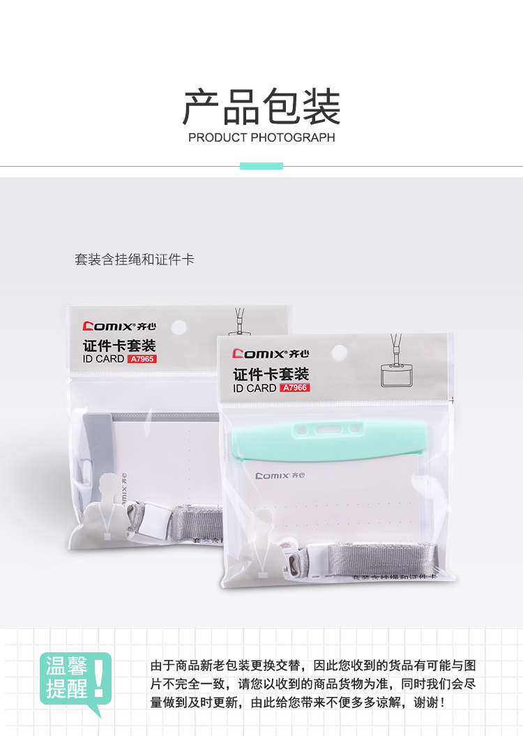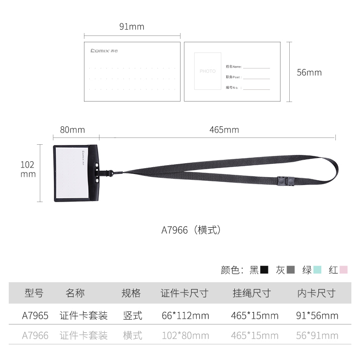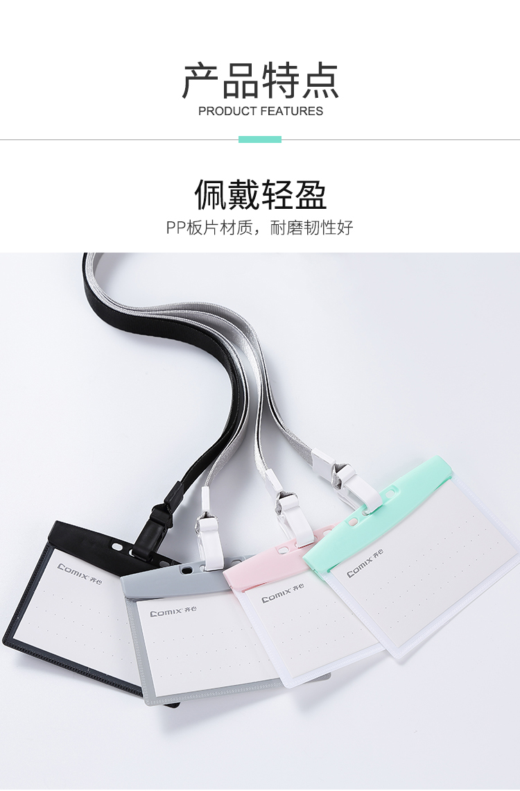 - 商品名称:齐心(Comix)工作证工牌挂绳套装证件卡套员工厂牌公交卡套 办公用品 竖式 黑 A7965