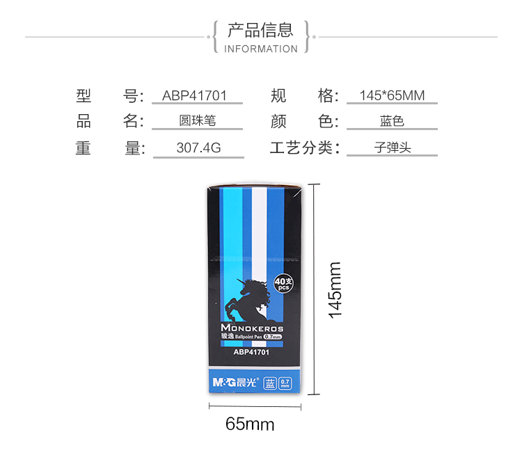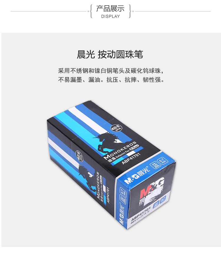- 商品名称:晨光(M&G)文具0.7mm蓝色经典按动圆珠笔 办公子弹头原子笔 俊逸系列便携中油笔 40支/盒ABP41701
