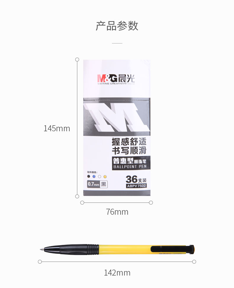 - 商品名称:晨光(M&G)文具0.7mm黑色经典按动圆珠笔 办公子弹头原子笔 普惠型中油笔 36支/盒ABPV7502