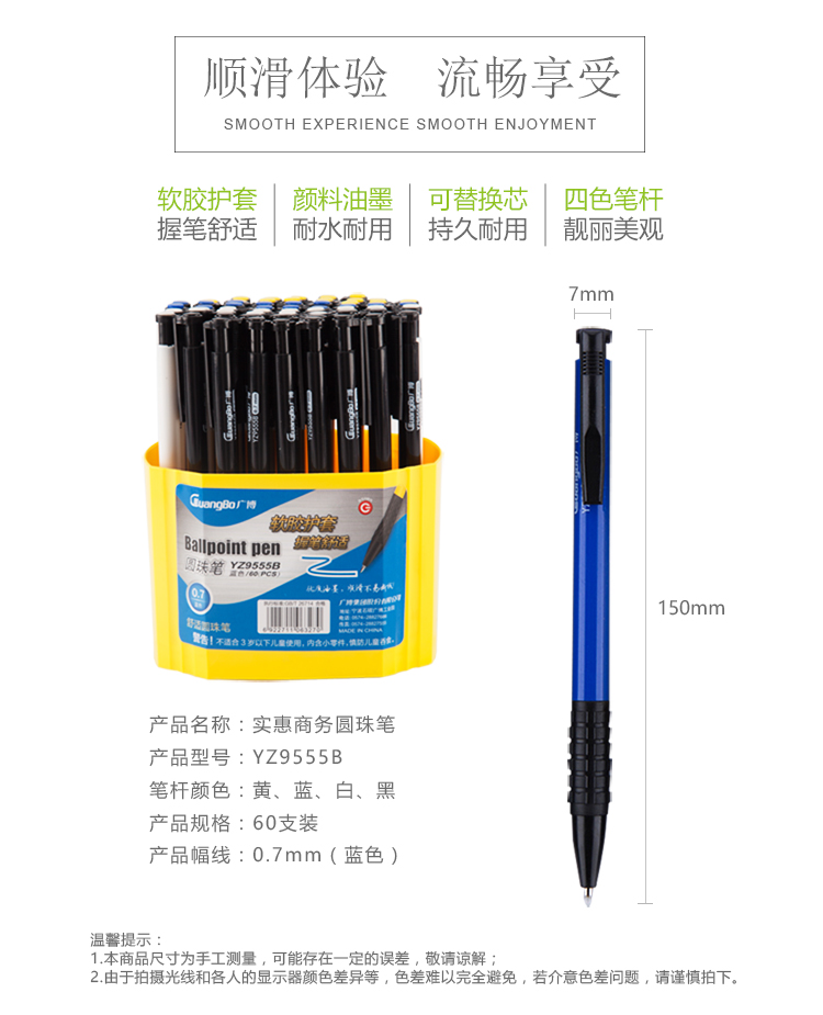 - 商品名称:广博(GuangBo) 0.7mm蓝色按动圆珠笔 原子笔 按动笔 升级版60支装YZ9555B