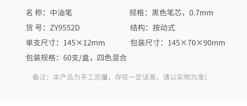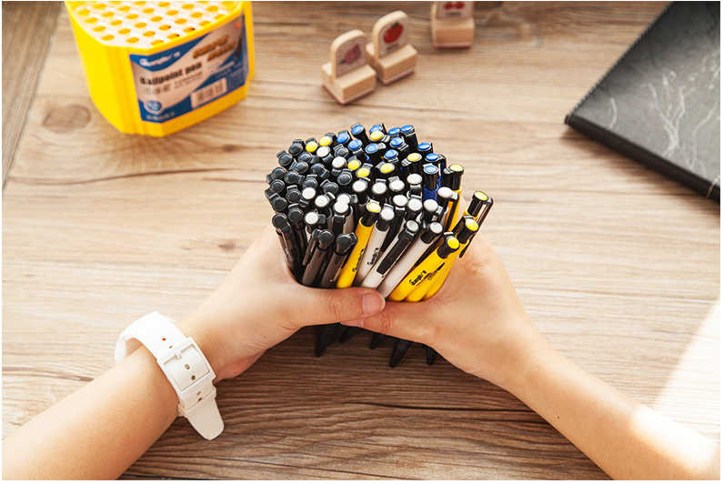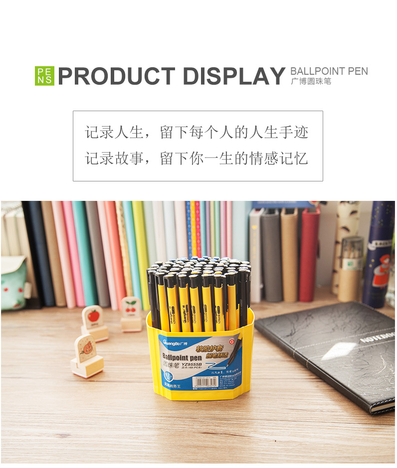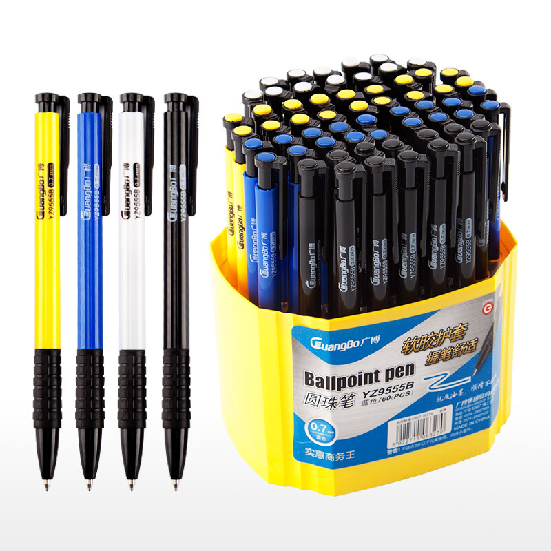 - 商品名称:广博(GuangBo)60支装0.7mm按动圆珠笔办公用品原子笔中油笔学生文具 圆珠笔-桶装60支 YZ9555B