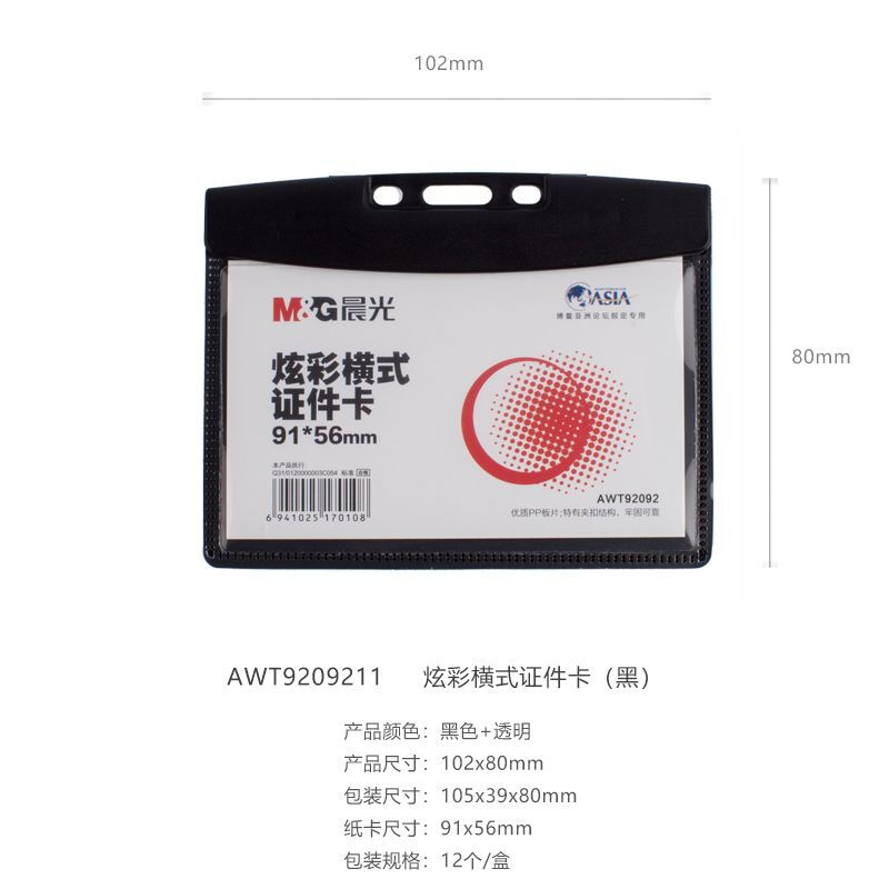 - 商品名称:晨光(M&G)证件卡 工作证 炫彩横式卡套 学生证用卡套 AWT92092 黑色12个装