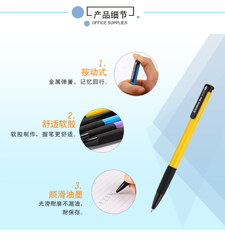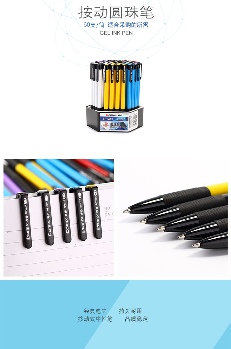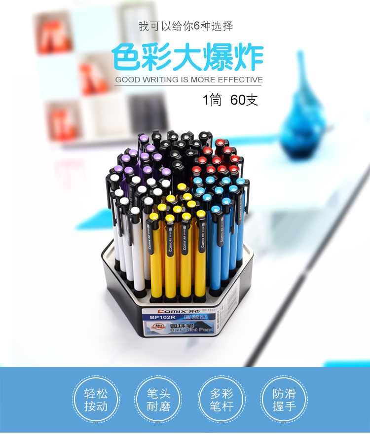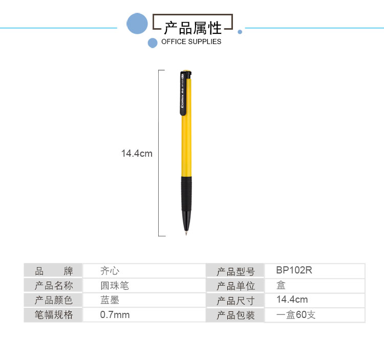 - 商品名称:齐心(Comix) 防滑握手按动圆珠笔/中油笔/原子笔 0.7mm60支装蓝色 EBP1012