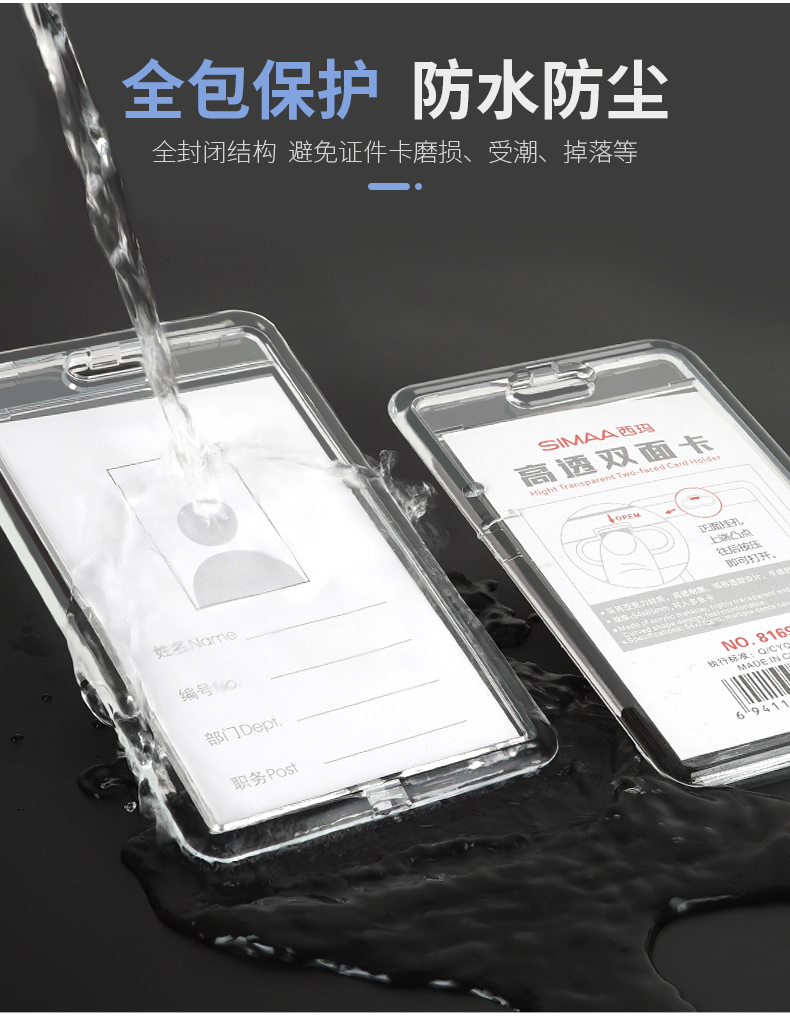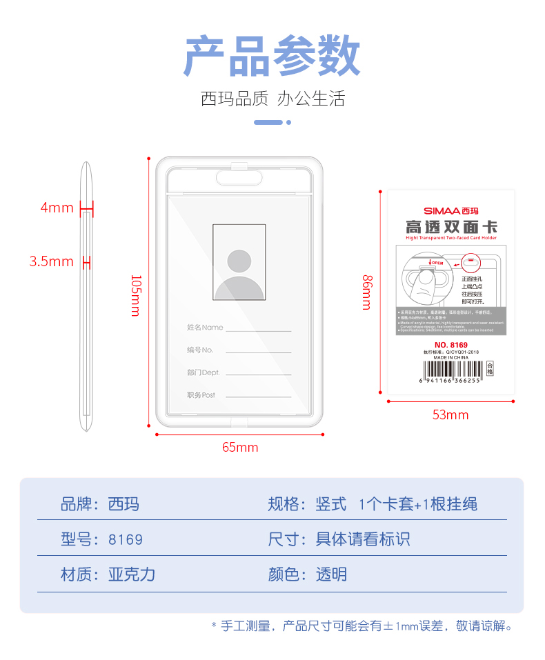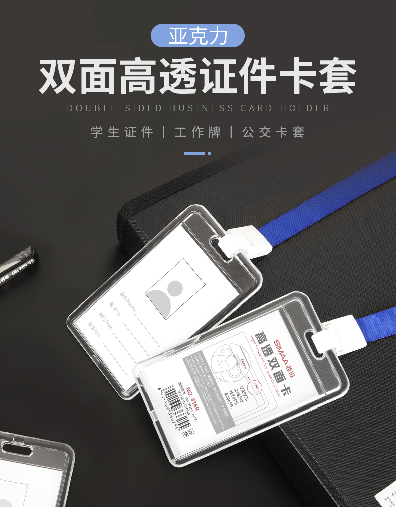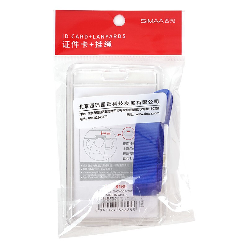 - 商品名称:西玛(SIMAA)双面高透亚克力证件卡套 竖式 1个卡套+1根挂绳 证件套工作证员工牌胸卡 透明 8169