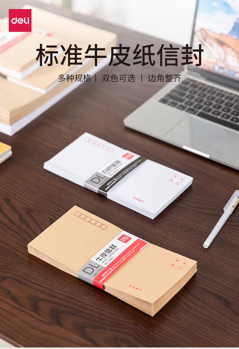 - 商品名称:得力牛皮纸信封3号5号7号标准邮局信封中号简约加厚100g/m²信笺纸大号信封办公室用 3号米黄色信封 (40个装)