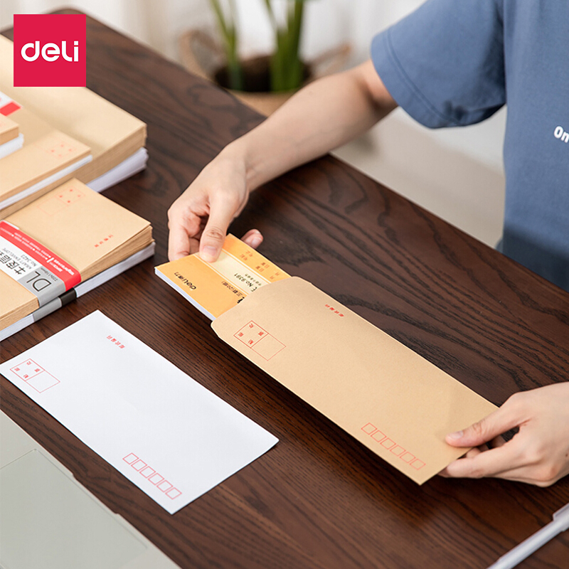 - 商品名称:得力牛皮纸信封3号5号7号标准邮局信封中号简约加厚100g/m²信笺纸大号信封办公室用 5号米黄色信封(40个装)