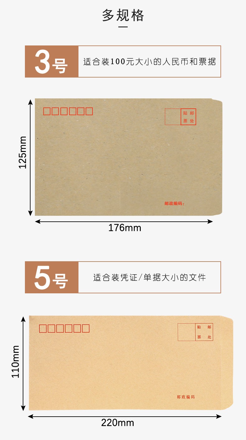商品名称:广博(GuangBo)100个加厚黄色牛皮纸信封3/5/7大小号白色增值税发票用信封信纸文件袋档案袋 黄色3号176*125mm(100个)
