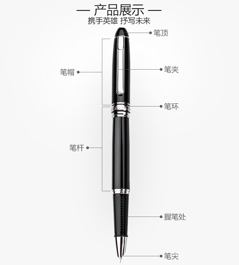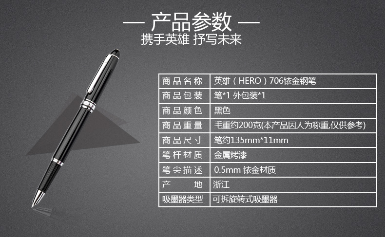 - 商品名称:英雄(HERO)黑漆铱金钢笔墨水笔暗尖 706
