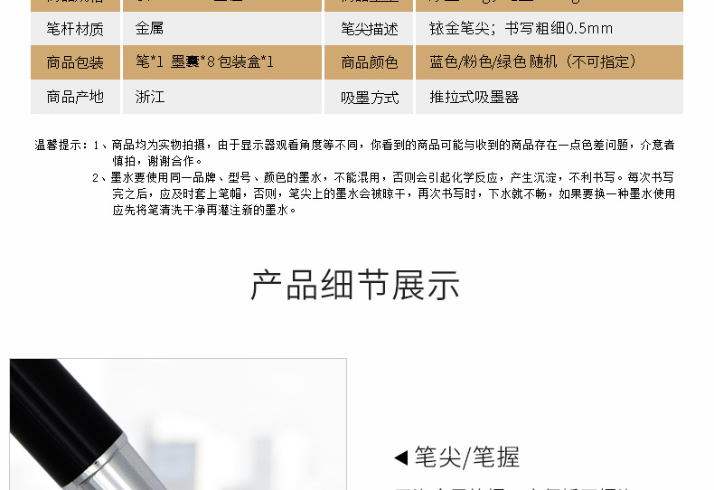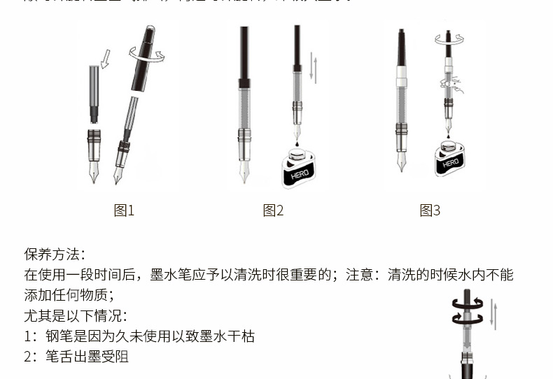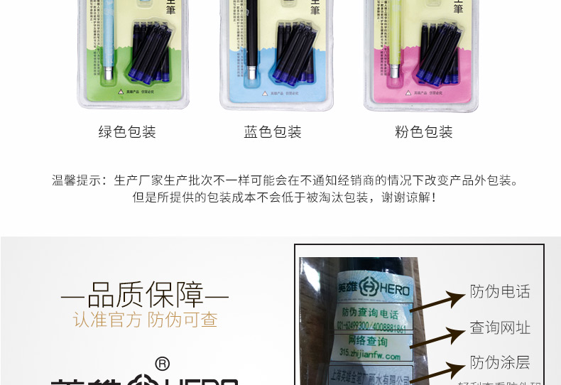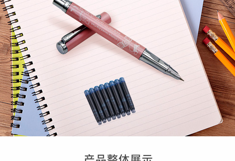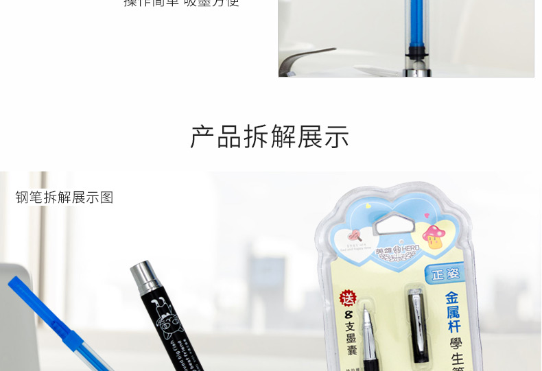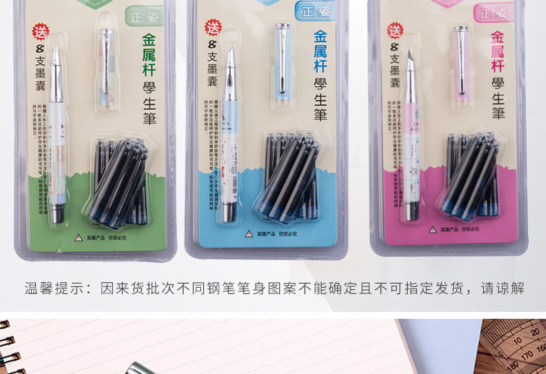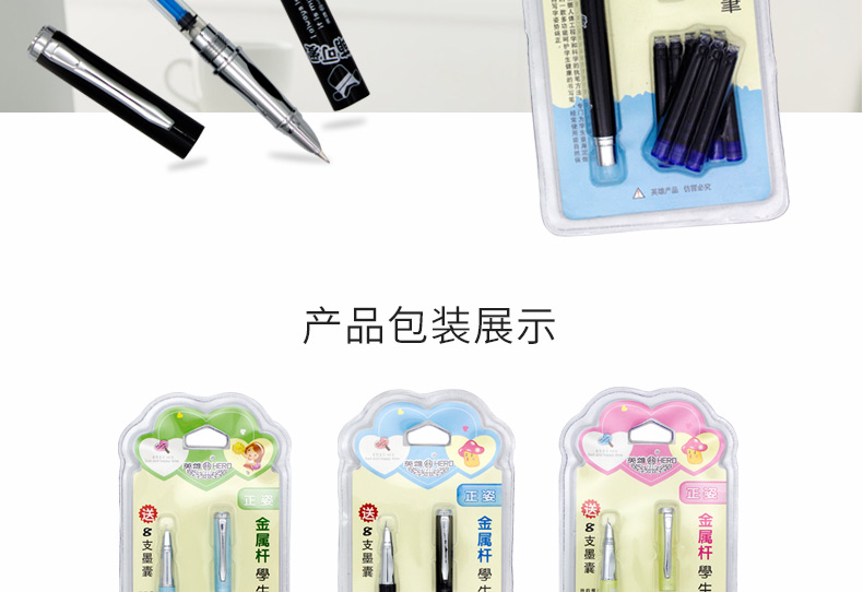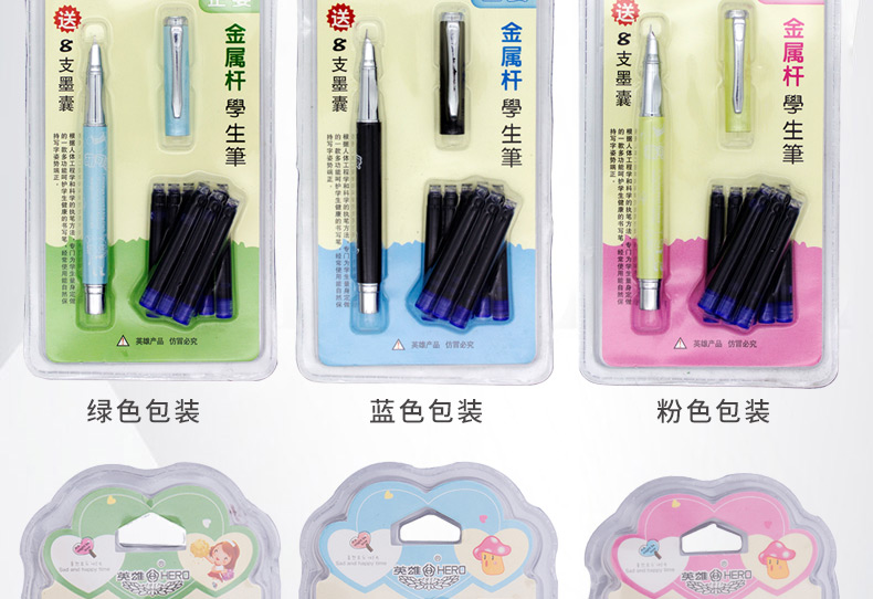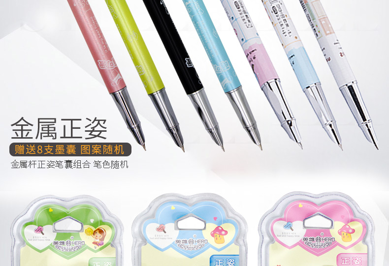 商品名称:英雄(HERO)金属杆正姿笔囊组合钢笔01(附送墨囊8支)粉色包装钢笔 3102