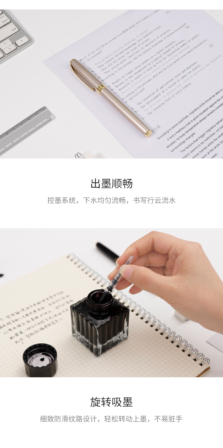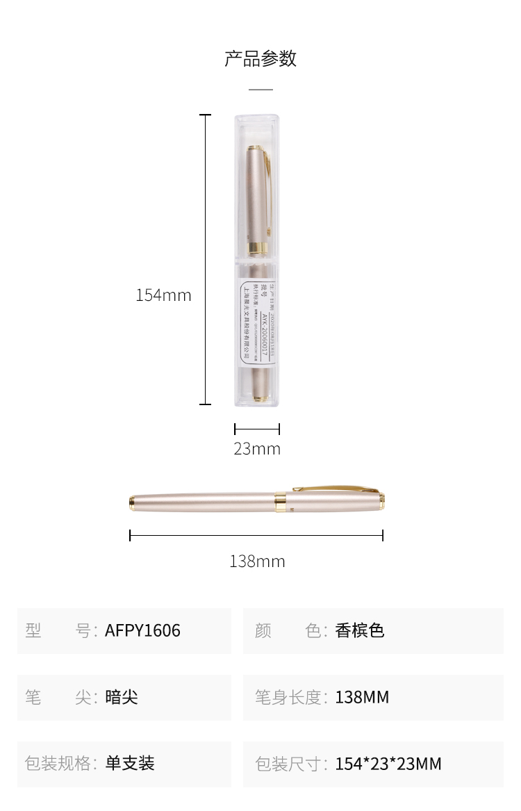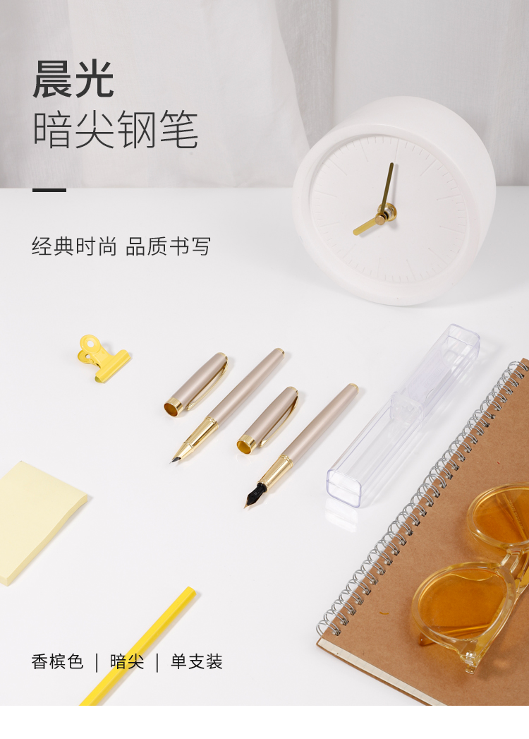商品名称:晨光(M&G)文具香槟色暗尖金属钢笔 商务办公签字笔 学生练字笔墨水笔 单支装AFPY1606J2
