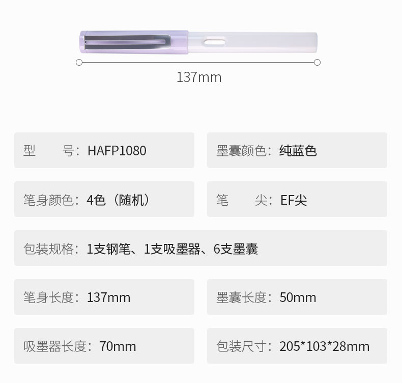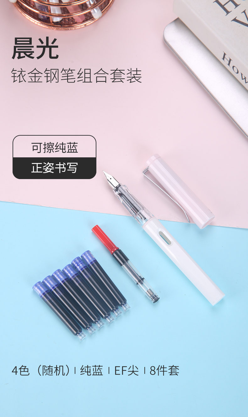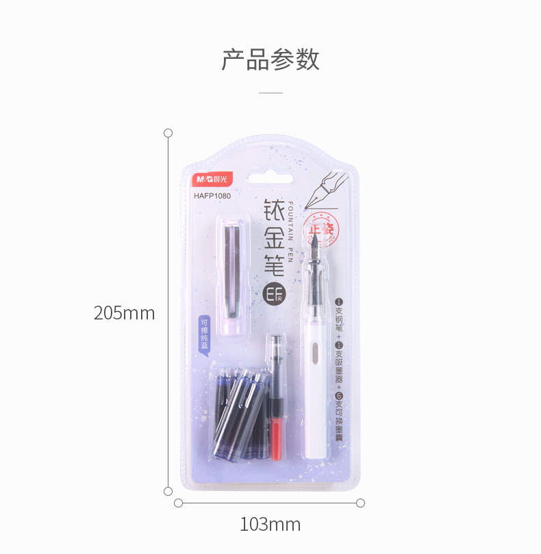 - 商品名称:晨光(M&G)文具纯蓝EF可换墨囊钢笔 练字墨水笔 铱金钢笔套装(笔*1+吸墨器*1+墨囊*6) 颜色随机HAFP1080B3