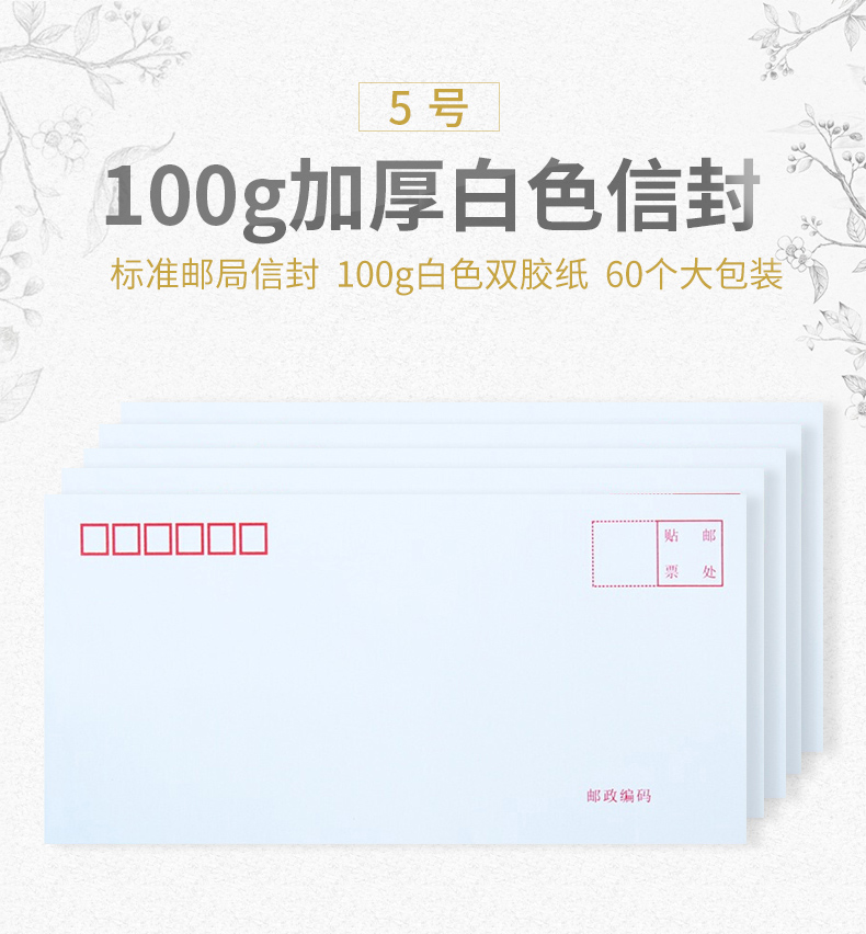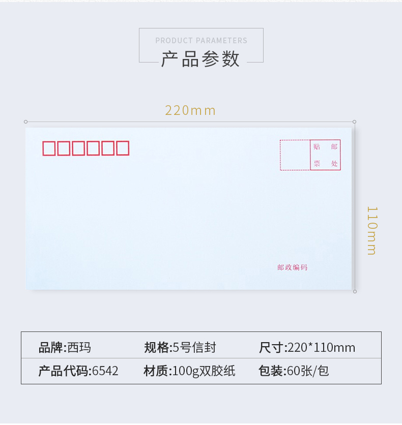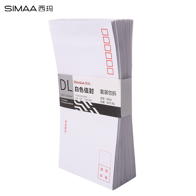 - 商品名称:西玛(SIMAA)60张5号白色信封 邮局标准信封220*110mm6542
