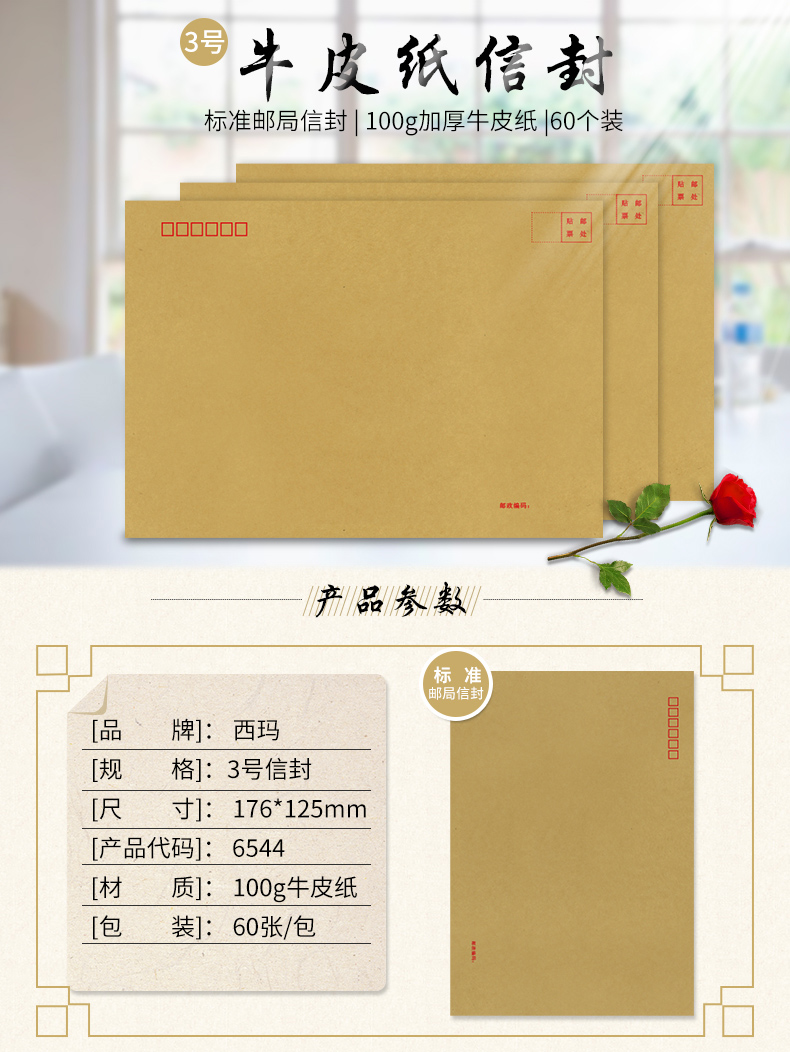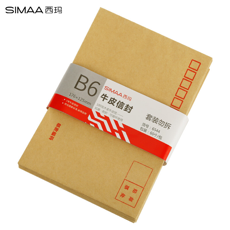 - 商品名称:西玛(SIMAA)60张3号加厚牛皮纸信封 邮局标准信封176*125mm 6544