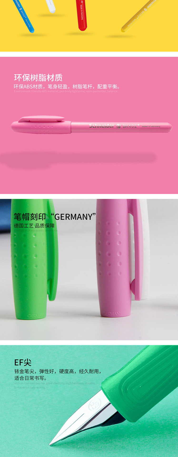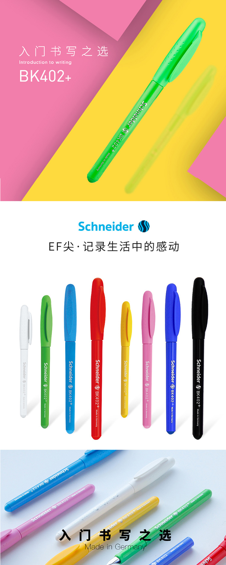 施耐德(Schneider)钢笔德国进口男女学生用成人练字笔签字笔墨水笔EF尖BK402+绿色单支装