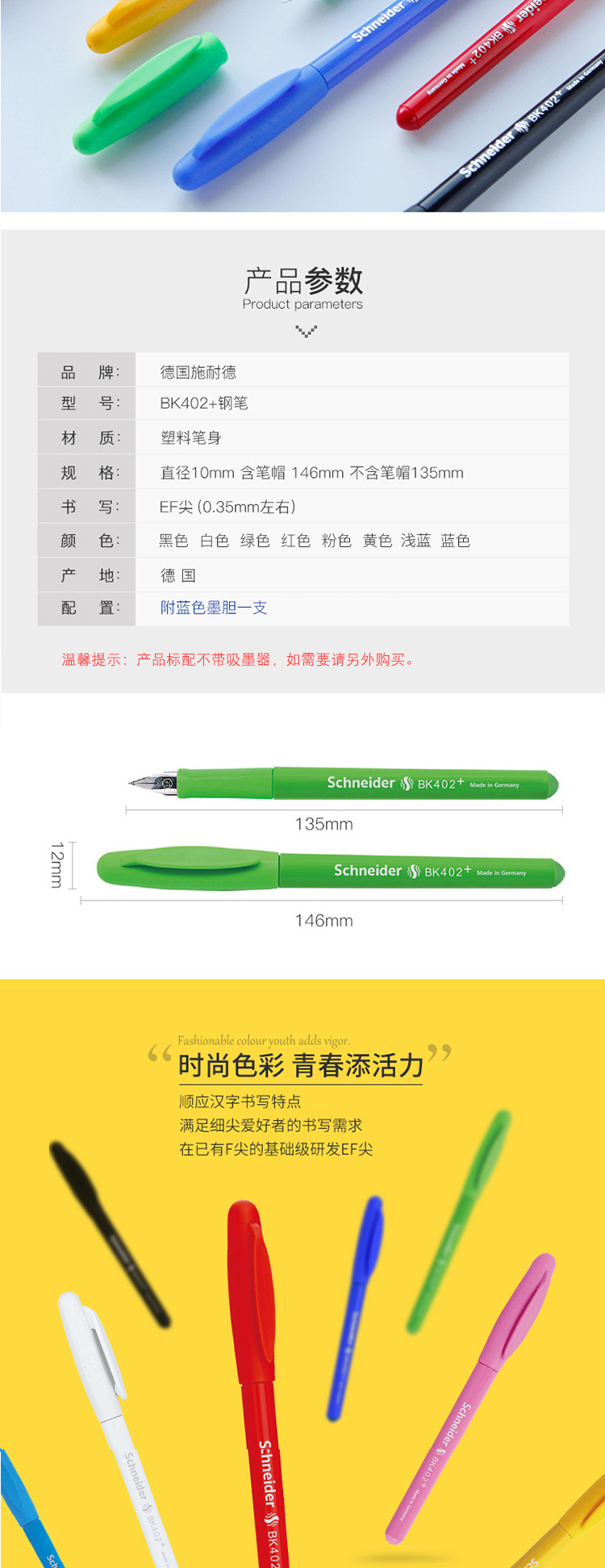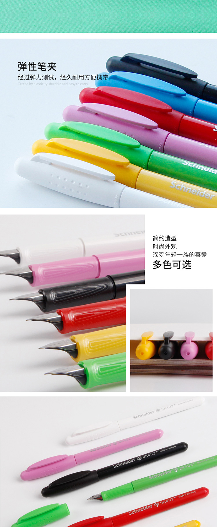 商品名称:施耐德(Schneider)钢笔德国进口男女学生用成人练字笔签字笔墨水笔EF尖BK402+绿色单支装