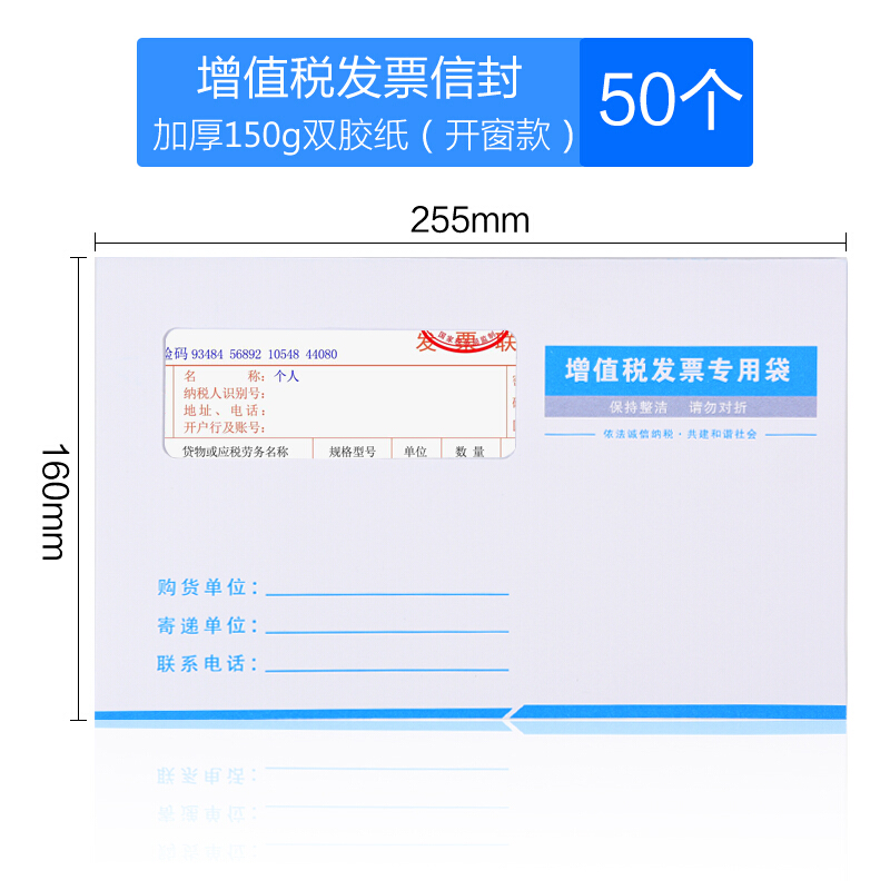 - 商品名称:递乐增值税发专用信封发票袋牛皮纸信封白色专票增税票据袋装发票信封 透明窗口款50个/包 4606