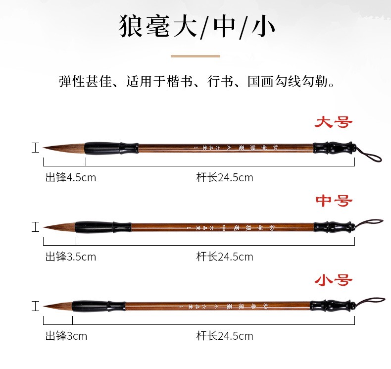 - 商品名称:六品堂毛笔套装初学狼毫兼毫羊毫成人入门大中小楷书法用笔初学者中楷练字学生文房四宝白云笔国画软笔书法笔 兼毫大中小3支装(弹性适中 适合初学) 基础款:毛笔