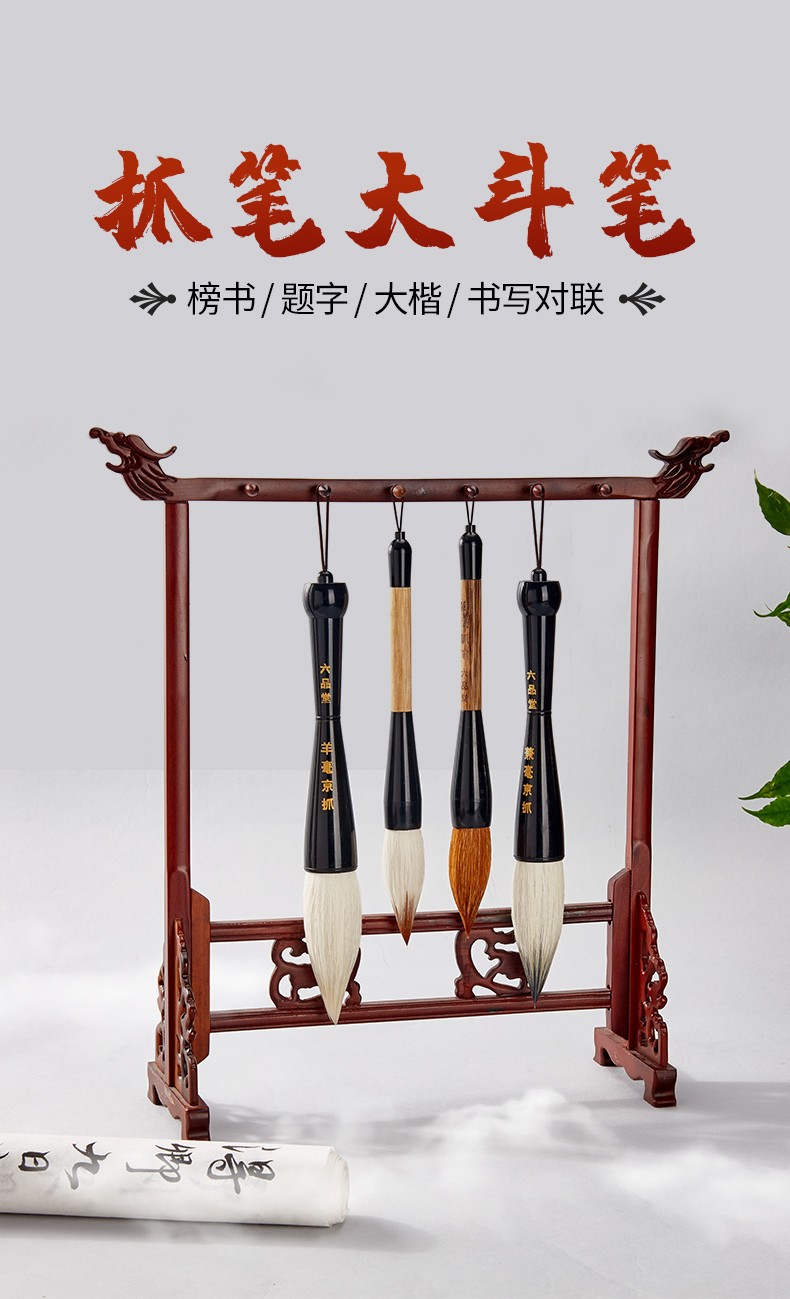 - 商品名称:六品堂毛笔狼毫大斗笔抓笔粗大毛笔特大号写对联福字春联大字专用提斗笔兼毫羊毫熊毫对联书法创作练习笔 仿牛角—狼毫京抓