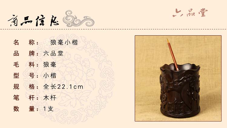 - 商品名称:六品堂 文房四宝毛笔狼毫书法 写心经文抄经本书法蝇头小楷毛笔 狼尾小号湖笔