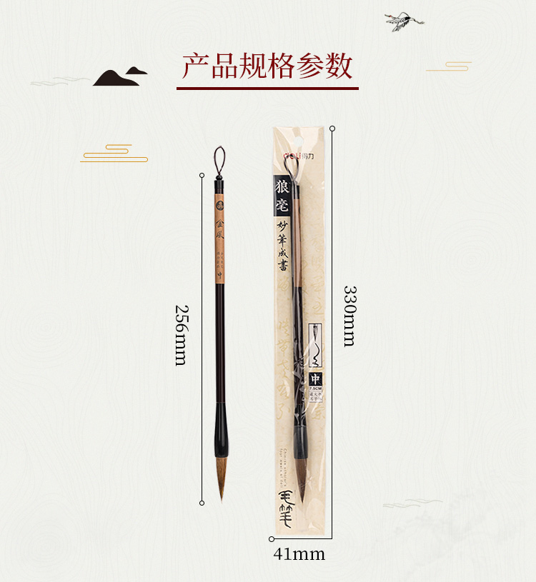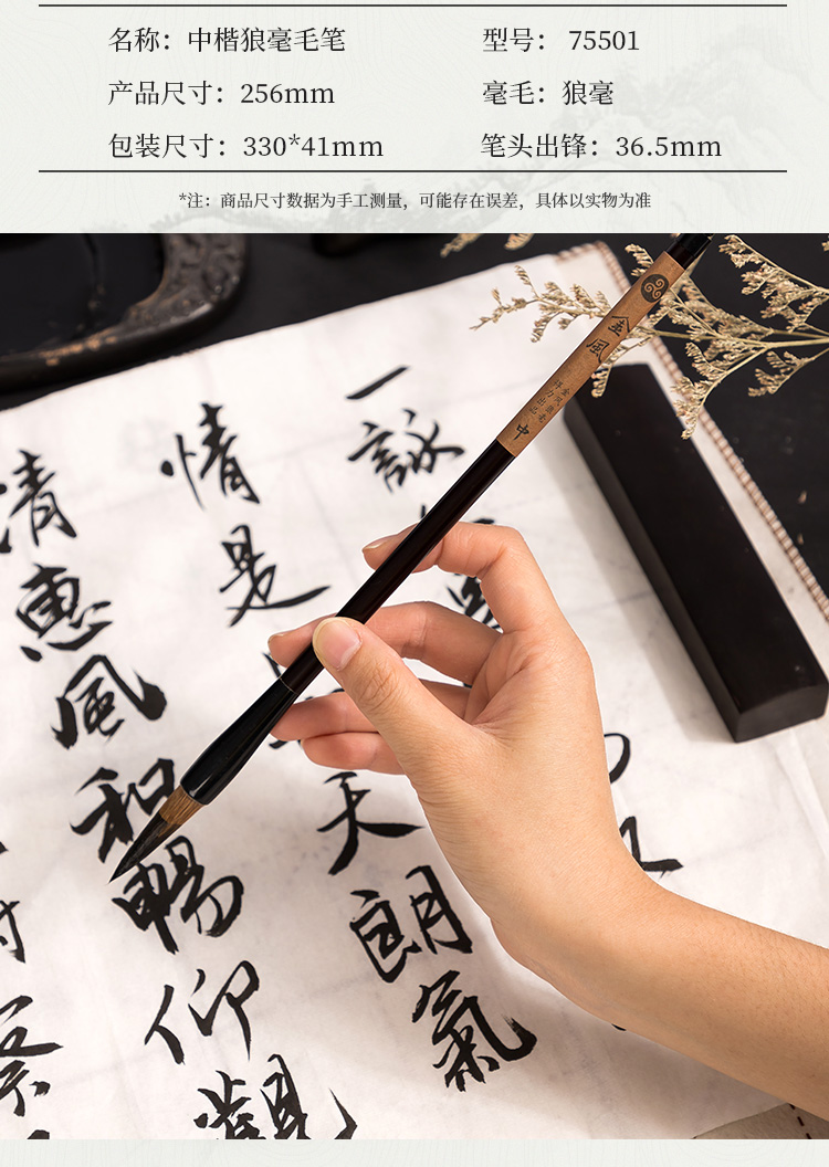 - 商品名称:得力(deli)中号狼毫毛笔 书法国画大中小楷成人初学者笔 行草隶篆书笔文房四宝 75501