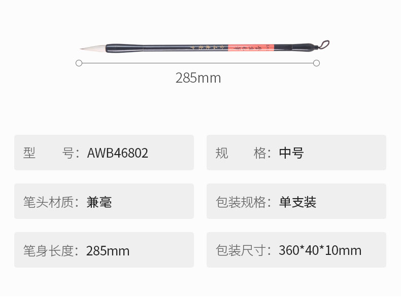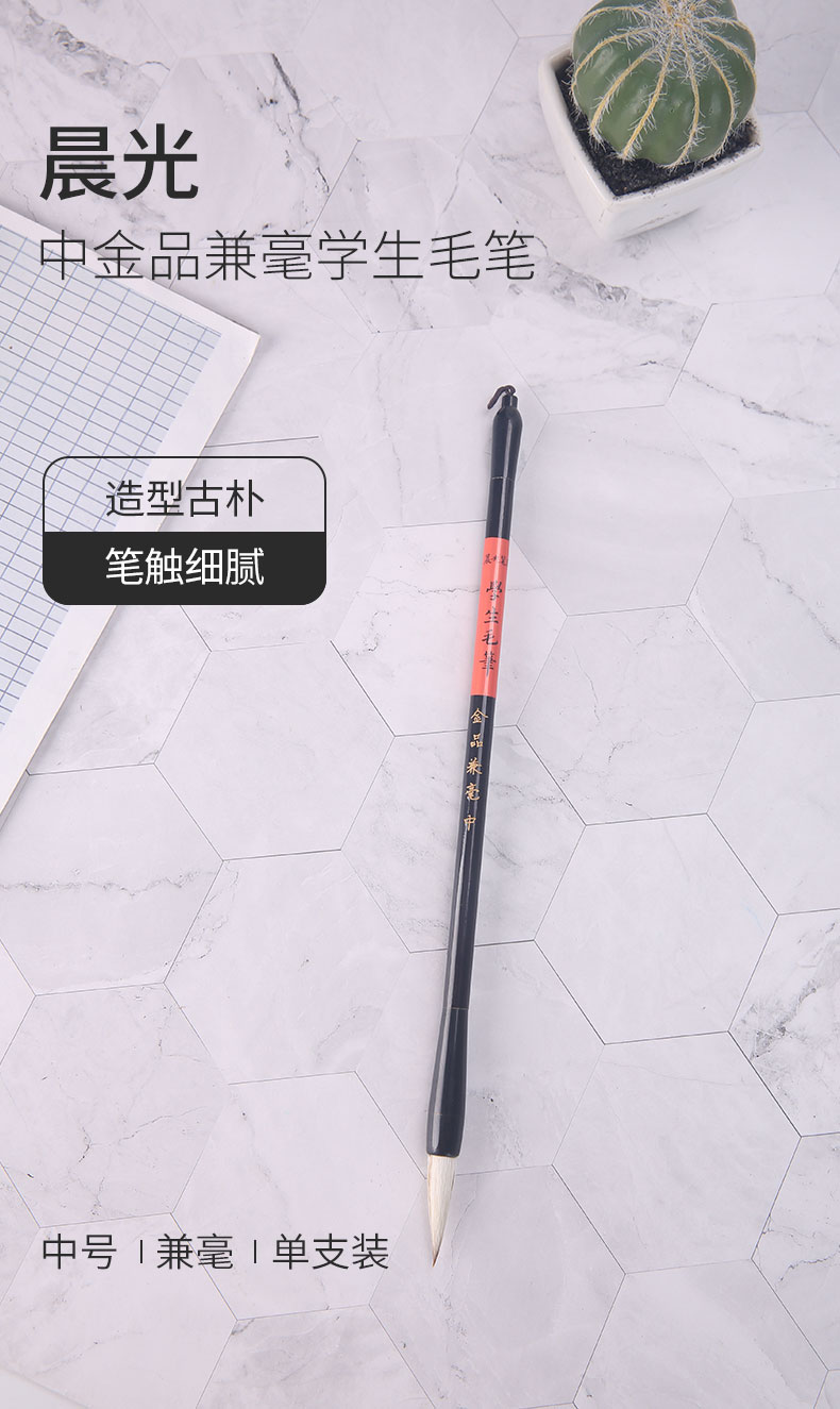 - 商品名称:晨光(M&G)文具中号兼毫毛笔 学生书法绘画练习毛笔 金品系列文房四宝用品 单支装AWB46802