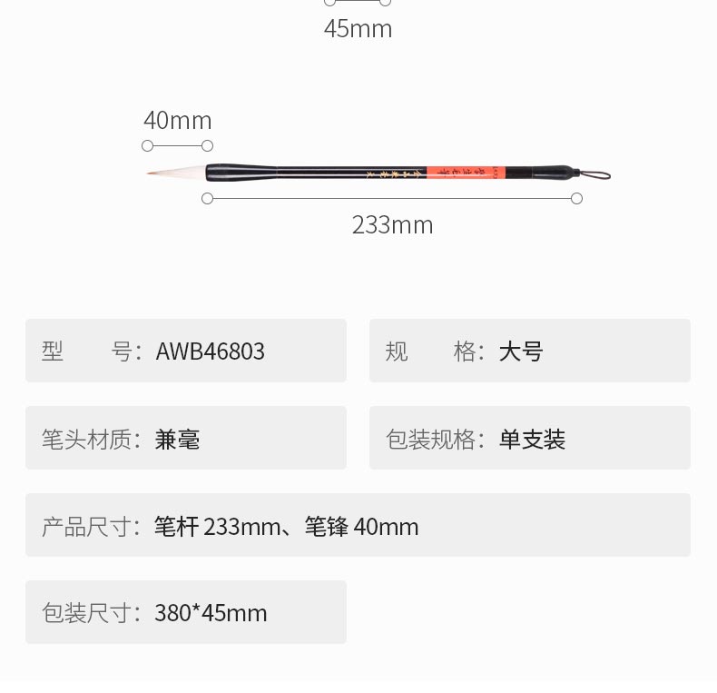 - 商品名称:晨光(M&G)文具大字兼毫毛笔 学生书法绘画练习毛笔 金品系列文房四宝用品 单支装AWB46803