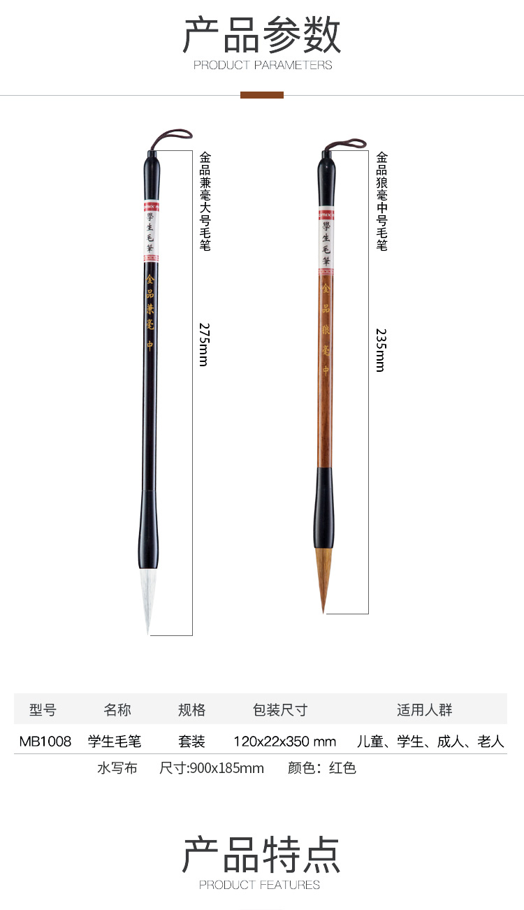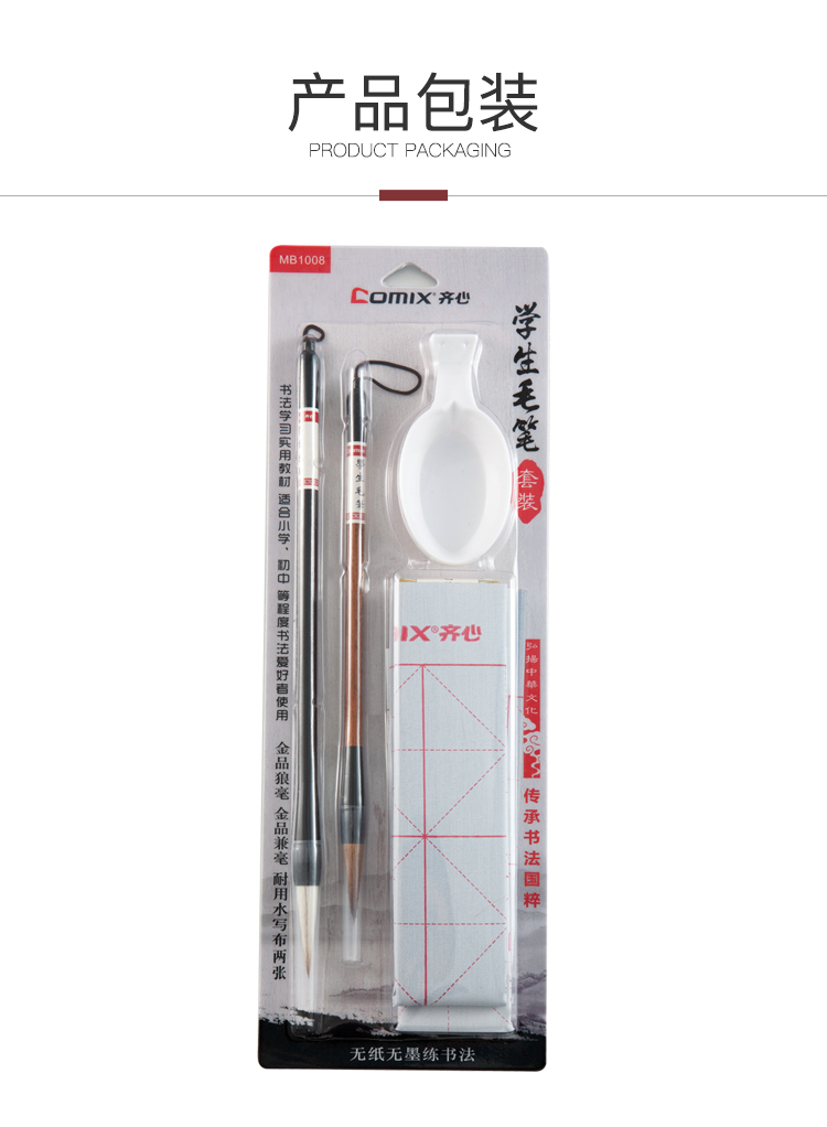 - 商品名称:齐心(Comix)学生毛笔套装 1金品兼毫(大)1金品狼毫(中)+1碟+2布 MB1008
