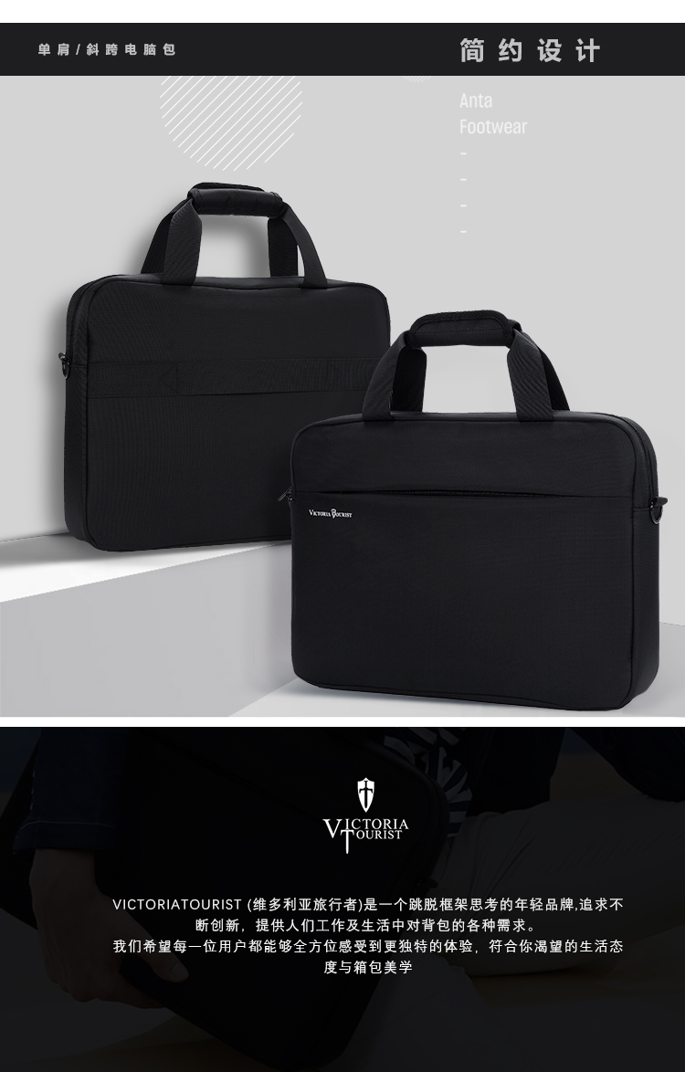 商品名称:维多利亚旅行者VICTORIATOURIST 电脑包15.6英寸手提电脑包 单肩斜跨商务公文包V7009黑色