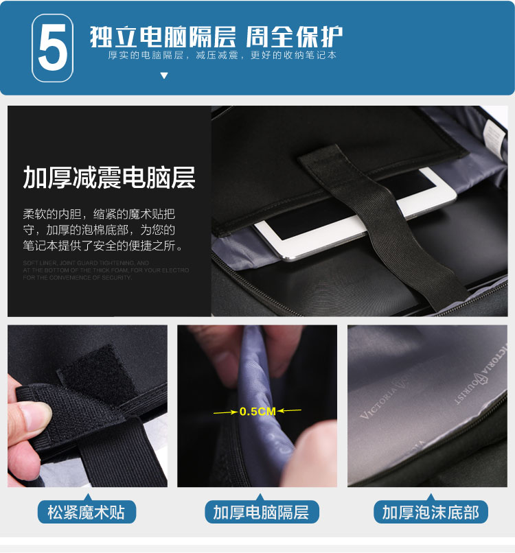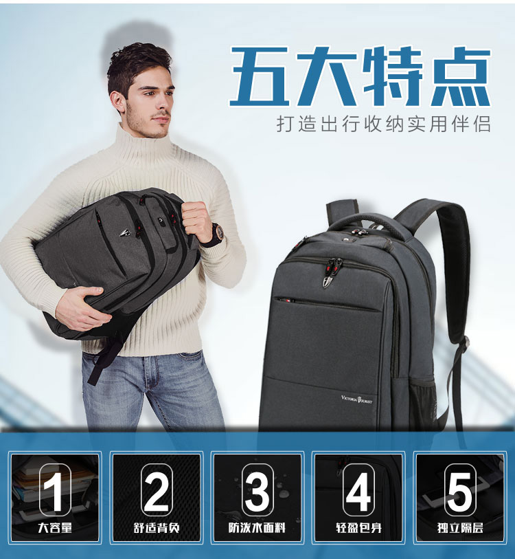 商品名称:维多利亚旅行者 VICTORIATOURIST 双肩包电脑包15.6英寸笔记本包 男防泼水双肩背包V9006黑色