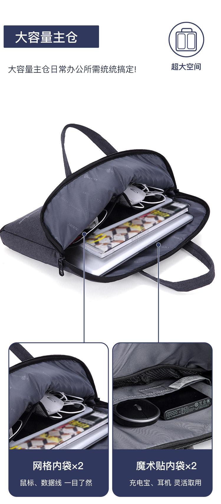 商品名称:维多利亚旅行者 VICTORIATOURIST 电脑包15.6英寸防泼水手提笔记本电脑包内胆包V7015灰色