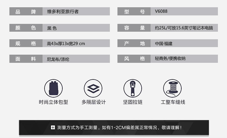 - 商品名称:维多利亚旅行者(VICTORIATOURIST)双肩包商务笔记本电脑包15.6英寸 时尚休闲双肩背包男书包V6088黑色
