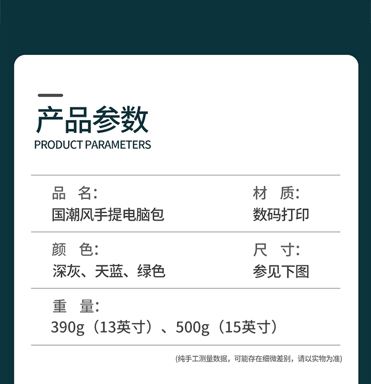 商品名称:必优美(BUBM)华为荣耀电脑包13.3英寸笔记本手提包复古中国风保护套国潮牌男女商务包 13.3英寸深灰