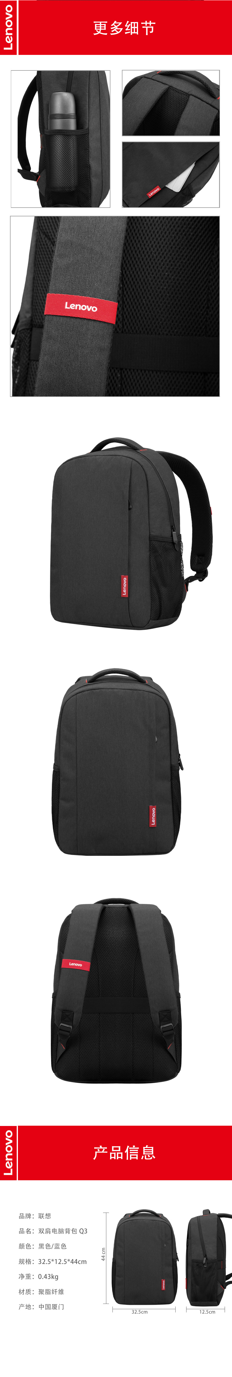 - 商品名称:联想(Lenovo)笔记本双肩包 电脑包 休闲商务旅行15.6英寸学生书包出差包拯救者背包小新背包 Q3